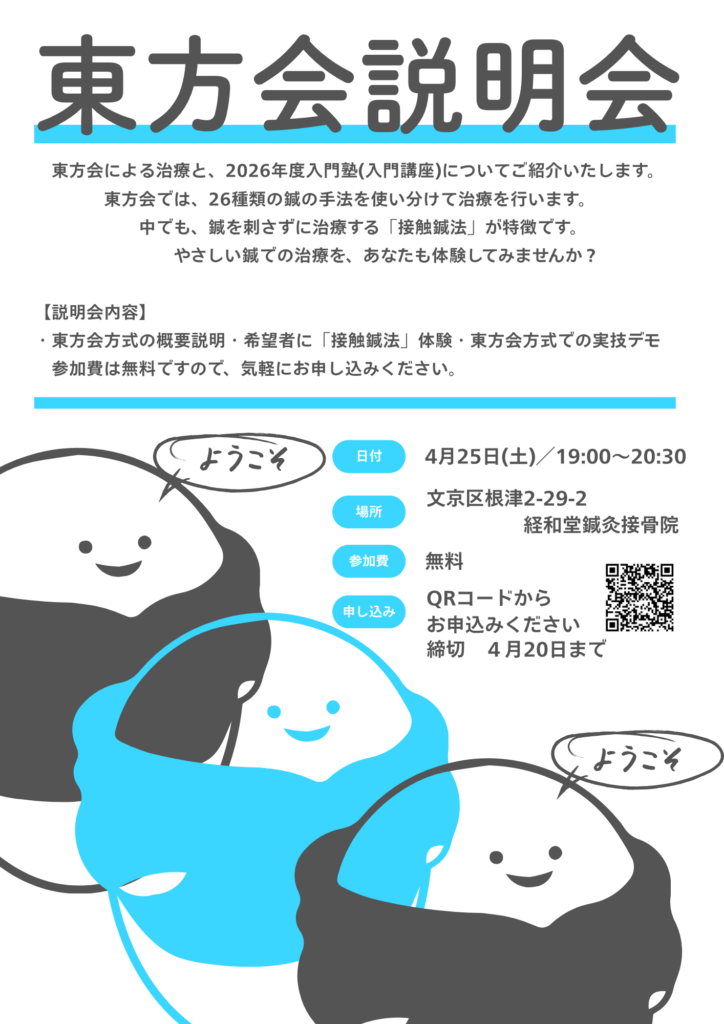 東方会方式による治療と2026年度の入門塾(入門講座)についてご紹介いたします。